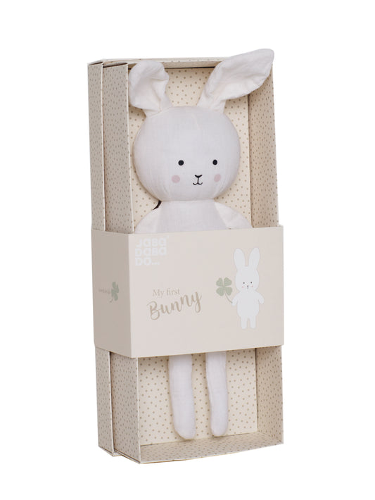 Stofftier aus Musselin mit Name personalisiert in Geschenkverpackung Hase