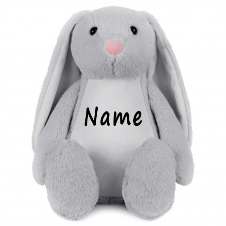 Stofftier Hase Grau mit Name personalisiert Kuscheltier Stoffhase für Kinder Flauschiges Plüschtier 40cm