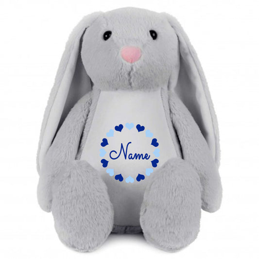 Stofftier Hase Grau mit Name personalisiert Kuscheltier Stoffhase für Kinder Flauschiges Plüschtier 40cm Motiv Herzkreis
