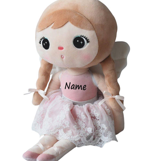 Personalisierte Stoffpuppe Ballerina mit Name Bedruckt Kuschelpuppe mit gesticktem Gesicht