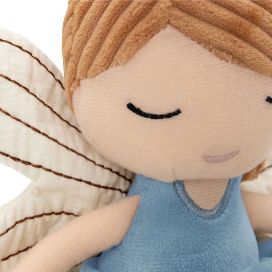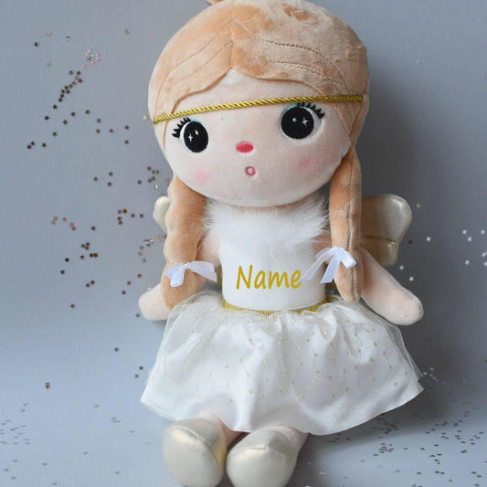 Personalisierte Stoffpuppe Engel mit Flügeln mit Name Bedruckt Kuschelpuppe mit gesticktem Gesicht