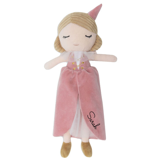 Stoffpuppe Prinzessin mit Name personalisierbar weiche Kuschelpuppe zum Spielen mit aufgesticktem Gesicht Kleid