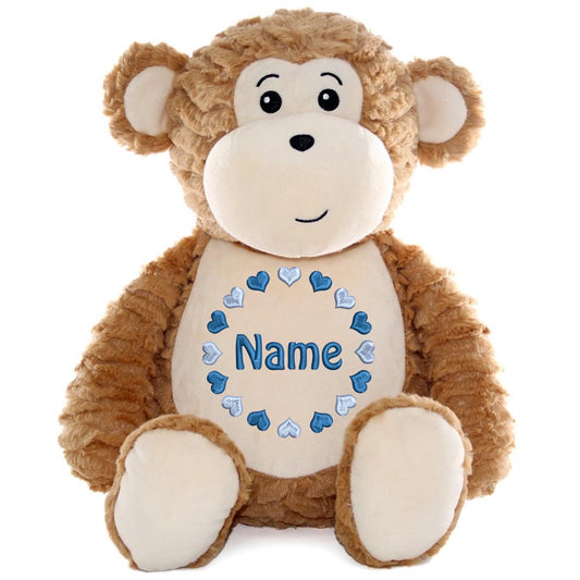Personalisiertes Stofftier AFFE Kuscheltier Bestickt Plüschtier zur Geburt Stickmotiv Herzkreis