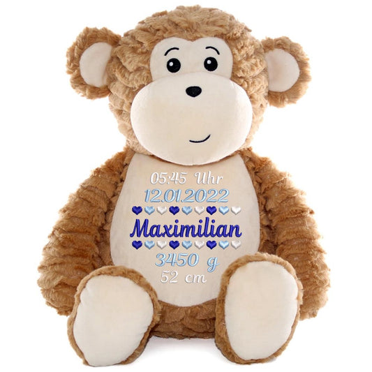 Personalisiertes Stofftier AFFE Kuscheltier Bestickt Plüschtier zur Geburt Stickmotiv Geburtsdaten