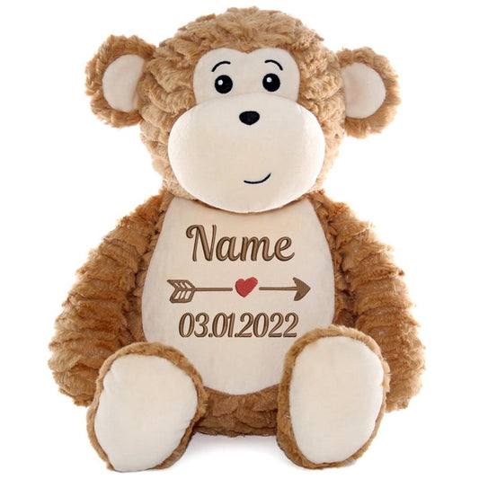 Personalisiertes Stofftier AFFE Kuscheltier Bestickt Plüschtier zur Geburt Stickmotiv Name und Datum