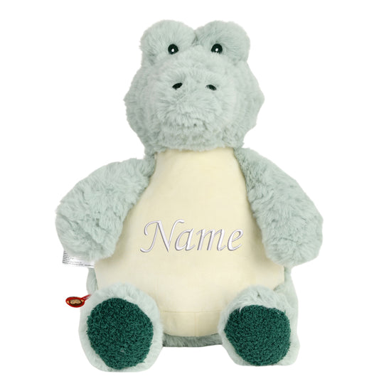 Personalisiertes Stofftier Alligator Kuscheltier Bestickt Plüschtier zur Geburt Stickmotiv Füßchen