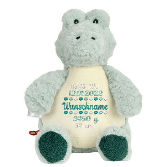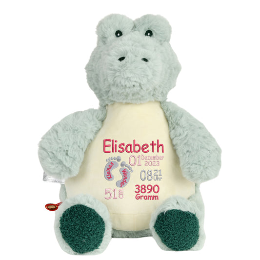 Personalisiertes Stofftier Alligator Kuscheltier Bestickt Plüschtier zur Geburt Stickmotiv Geburtsdaten