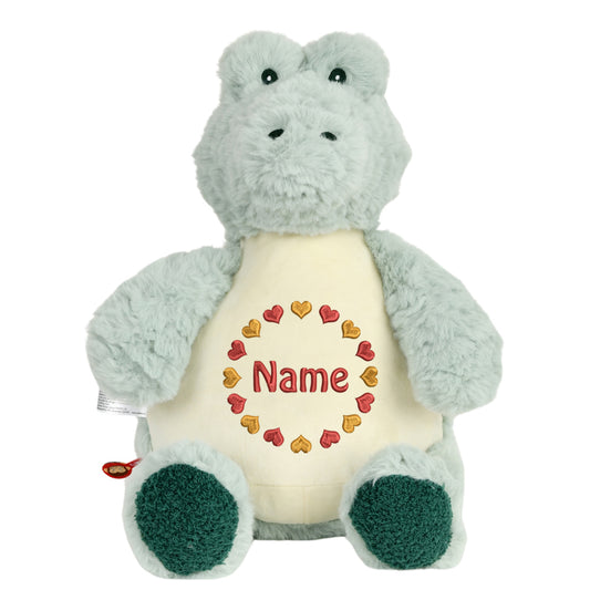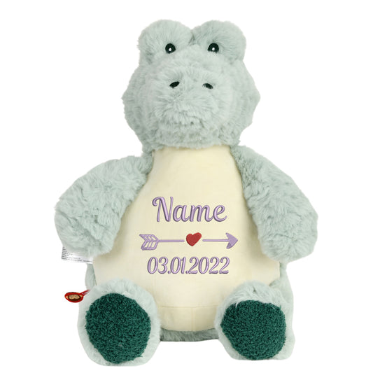 Personalisiertes Stofftier Alligator Kuscheltier Bestickt Plüschtier zur Geburt Stickmotiv Herzkreis