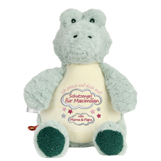 Personalisiertes Stofftier Alligator Kuscheltier Bestickt Plüschtier zur Geburt Stickmotiv Schutzengel