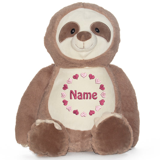 Stofftier mit Name Bestickt Kuscheltier Faultier personalisiert Herzkreis