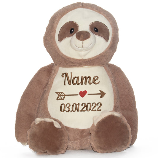 Stofftier mit Name Bestickt Kuscheltier Faultier personalisiert Name und Datum