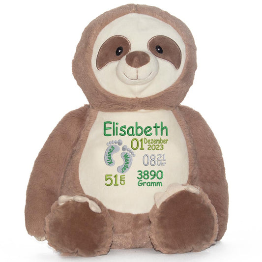 Stofftier mit Name Bestickt Kuscheltier Faultier personalisiert Geburtsdaten
