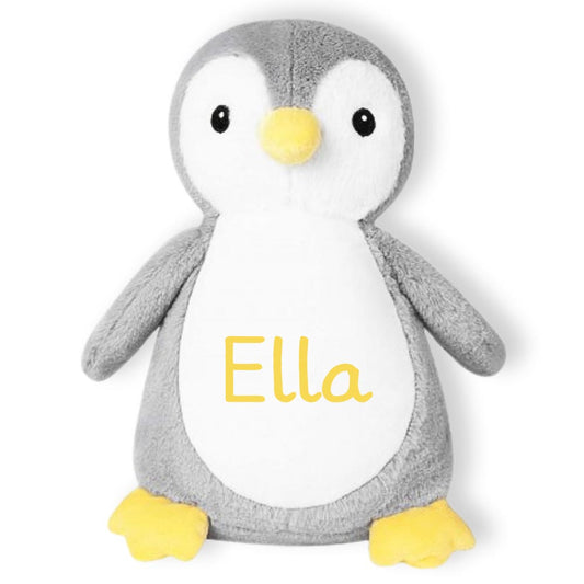 Stofftier Pinguin grau mit Name personalisiert Kuscheltier für Kinder Flauschiges Plüschtier 30cm Motiv Name
