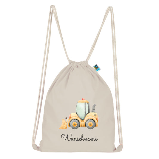 Personalisierter Turnbeutel aus Bio Baumwolle Wäschebeutel für Kinder Stoffbeutel mit Name und Motiv Bagger bedruckt