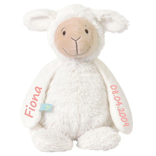 Schaf Stofftier mit Name und Geburtsdatum personalisiert Kuscheltier Lamm