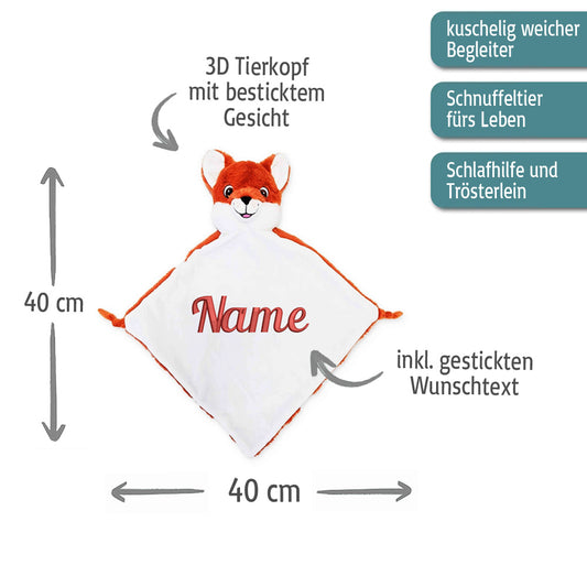 Personalisiertes Schnuffeltuch weiches Kuscheltuch mit Name Bestickt Schnuffeltier Schlafhilfe Tröster Geschenk zur Geburt Fuchs
