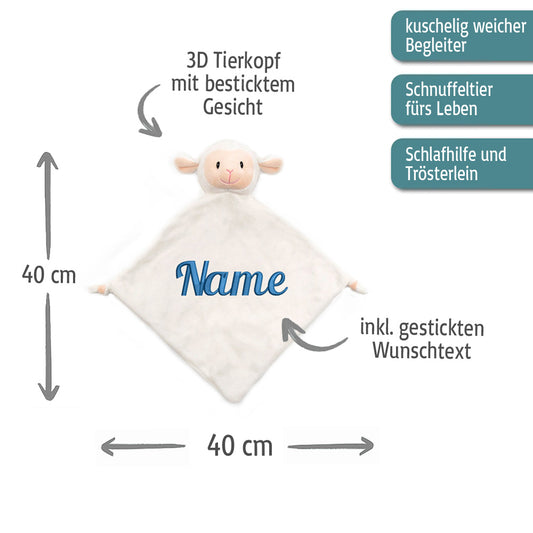 Personalisiertes Schnuffeltuch weiches Kuscheltuch mit Name Bestickt Schnuffeltier Schlafhilfe Tröster Geschenk zur Geburt Schaf