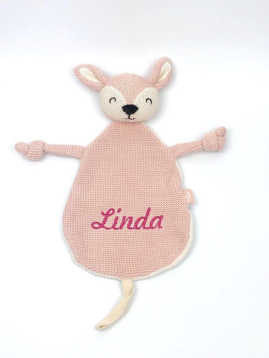 Schnuffeltuch mit Name Bestickt Kuscheltuch personalisiert Tröster Geschenk zur Geburt REH rosa