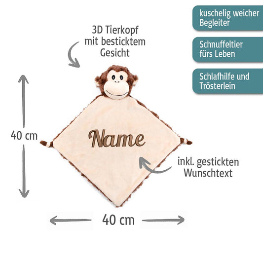 Personalisiertes Schnuffeltuch weiches Kuscheltuch mit Name Bestickt Schnuffeltier Schlafhilfe Tröster Geschenk zur Geburt AFFE