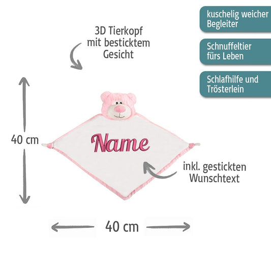 Personalisiertes Schnuffeltuch weiches Kuscheltuch mit Name Bestickt Schnuffeltier Schlafhilfe Tröster Geschenk zur Geburt Bär rosa