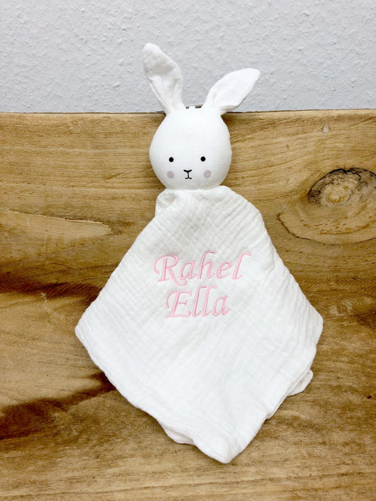 Baby Schnuffeltuch aus Musselin mit Namen bestick Hase