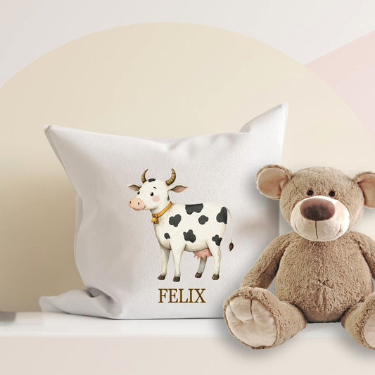 Personalisiertes Kissen mit Bauernhoftier-Motiv und Wunschname Bedruckt, Geschenk zur Geburt, Dekokissen Kinderzimmer