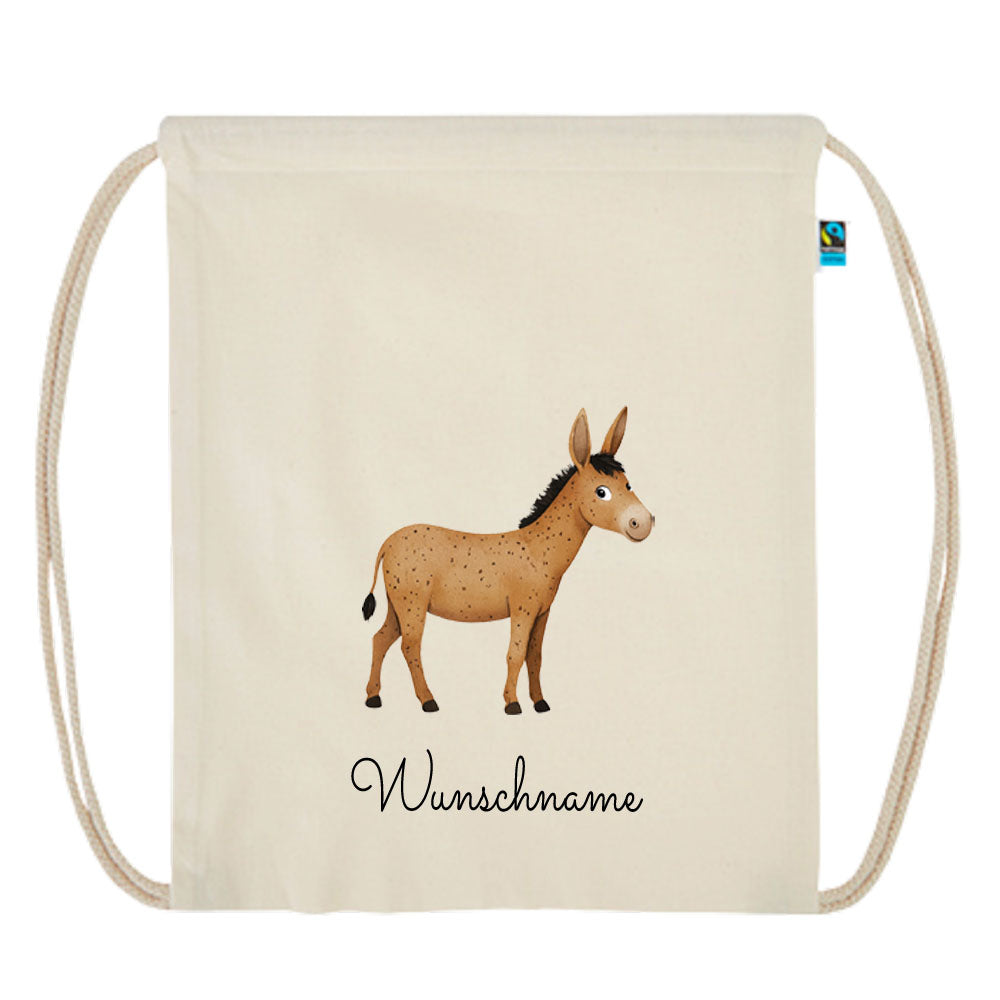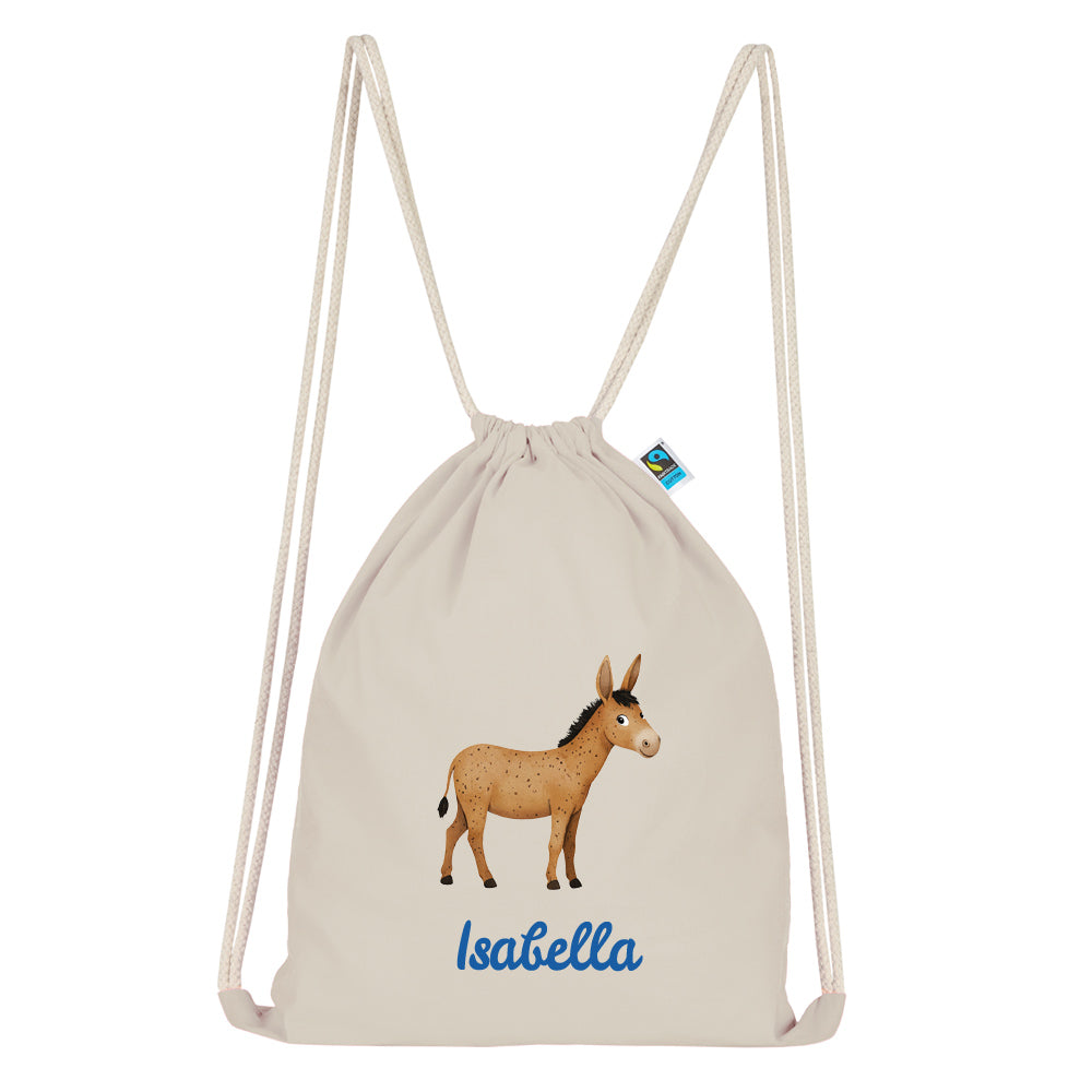 Personalisierter Turnbeutel aus Bio Baumwolle Wäschebeutel für Kinder Stoffbeutel mit Name und Motiv Esel bedruckt