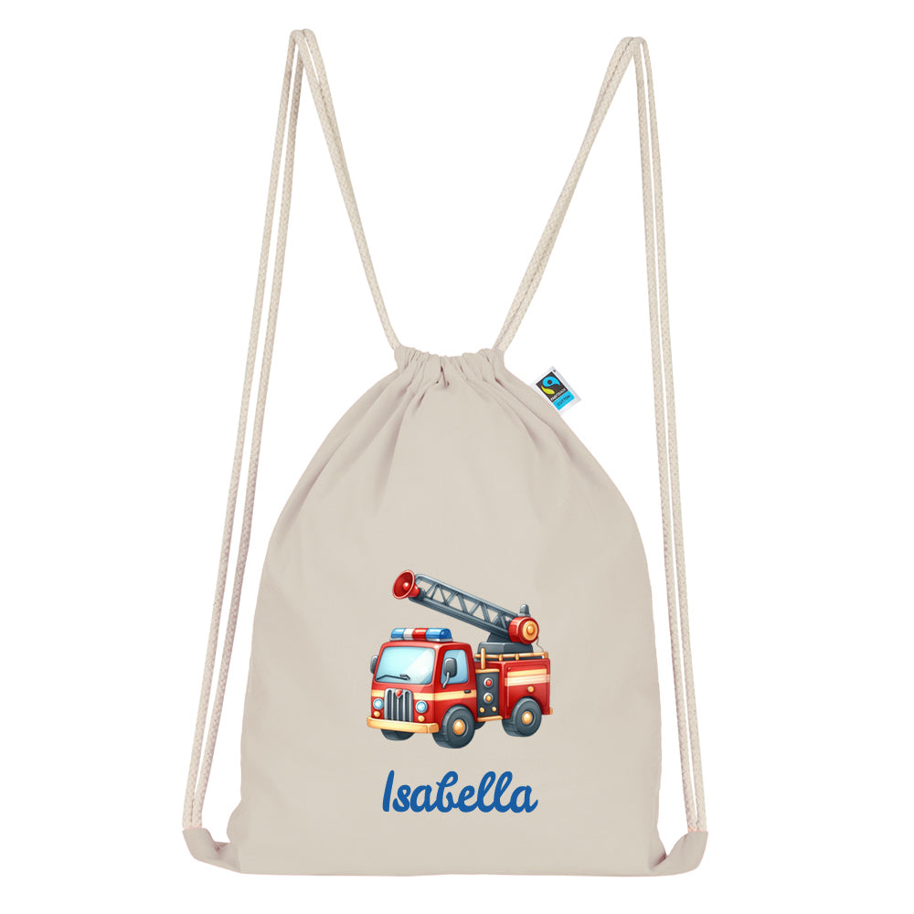Personalisierter Turnbeutel aus Bio Baumwolle Wäschebeutel für Kinder Stoffbeutel mit Name und Motiv Feuerwehr bedruckt