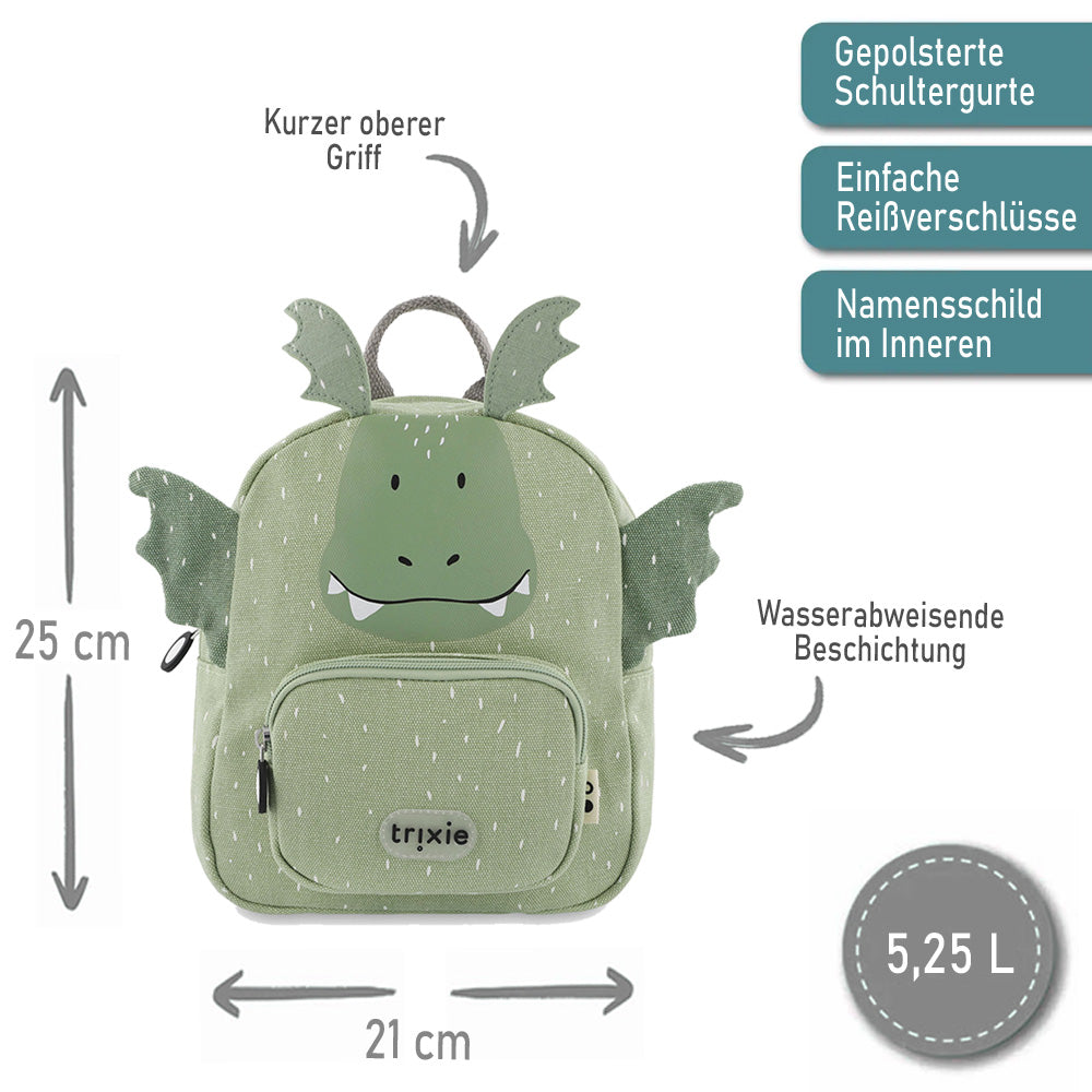 Rucksack + Trinkflasche im Set von Trixie mit Name personalisiert Motiv Drache