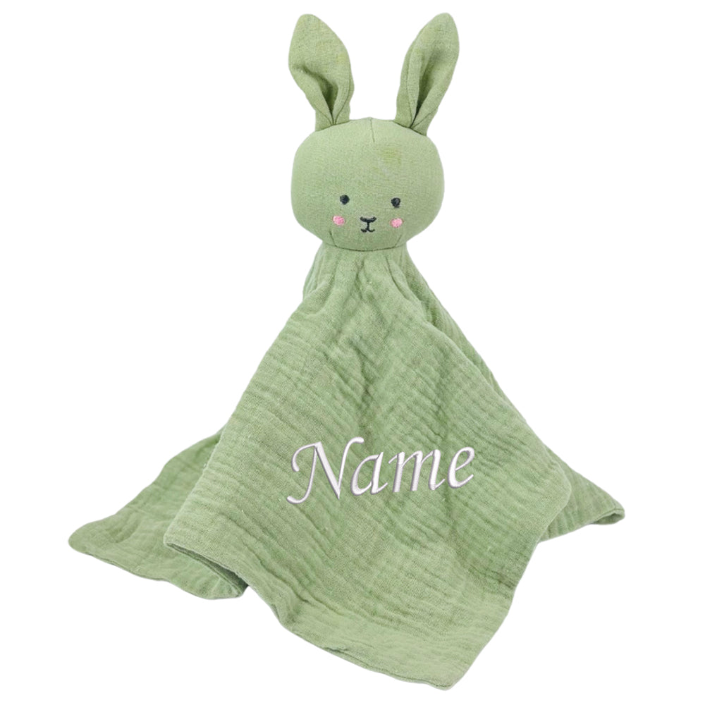 Schnuffeltuch aus Musselin mit Namen bestick Hase grün * Schmusetuch aus Baumwolle * Kuscheltuch für Babys